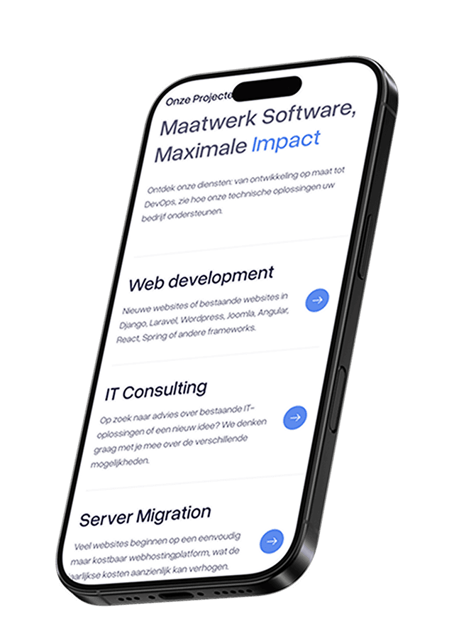 Ontdek onze diensten: van ontwikkeling op maat tot DevOps, zie hoe onze technische oplossingen uw bedrijf ondersteunen.